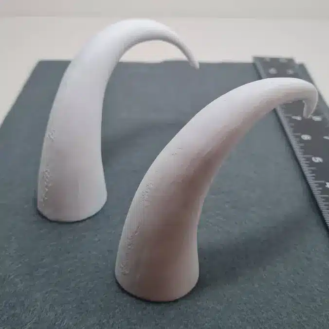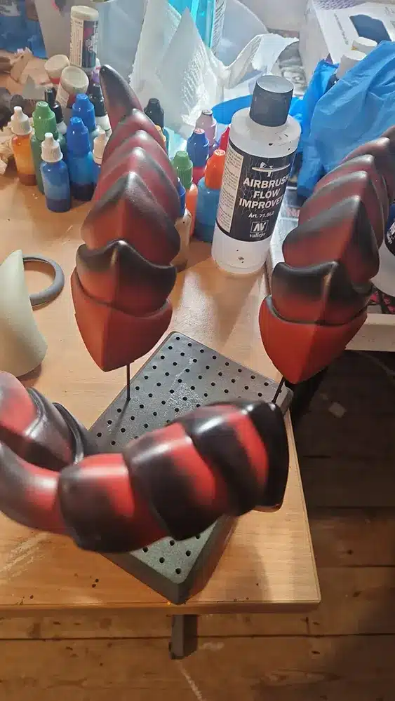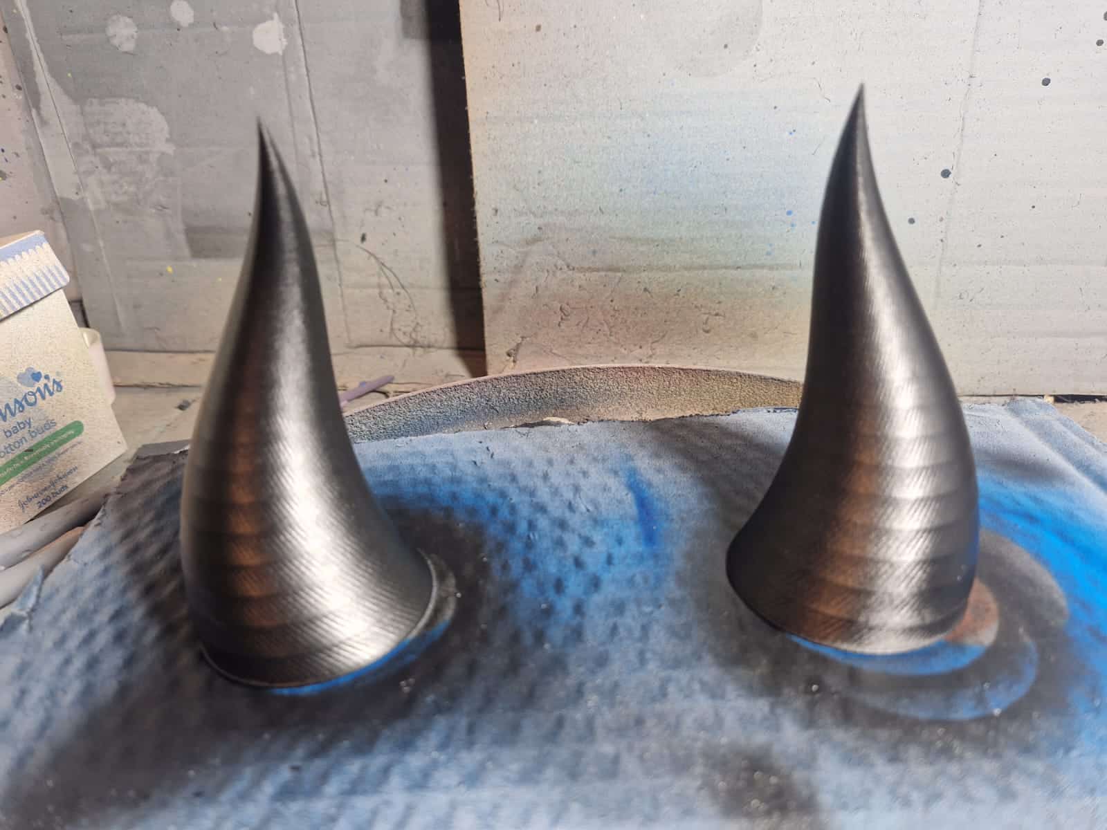 Each pair of cosplay horns is made to order. After printing, they are sanded, primed and painted to accentuate its texture before being sent off to you.