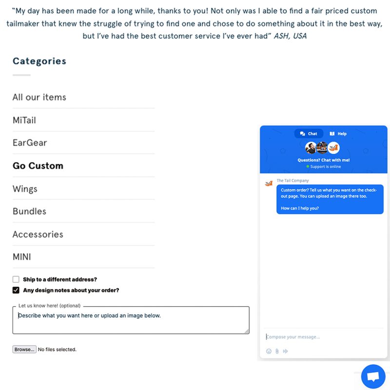 On our website, we have a dedicated page for custom orders—just click ‘Go Custom‘ in our Categories tab to explore all your options. Wondering how to tell us what you want? It’s simple! Use the little blue envelope in the bottom-right corner to chat with us, or add your ideas and an image in the box on the Checkout page.
