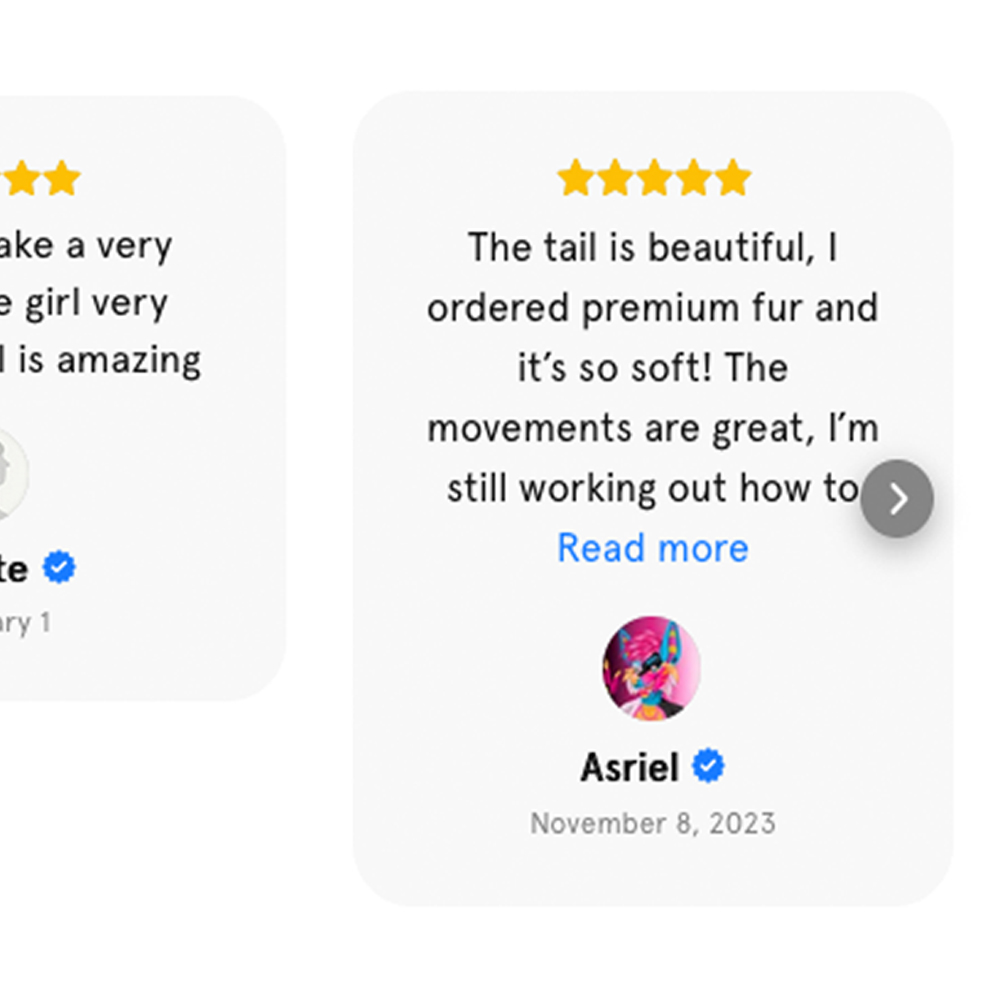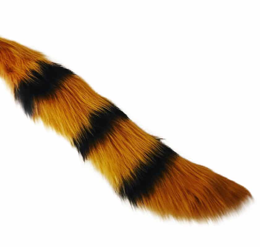 And of course, all our furry tails can usually be customized for free! Whether you want a golden dragon tail, a snow leopard tail, a beautiful fox tail or something completely different, we can make it for you. Please bear in mind that some designs you come up with may incurr an extra cost. Perhaps you want a premium fur, or a detailed pattern, or something needs airbrushing. We will always discuss this with you before we make the item.
