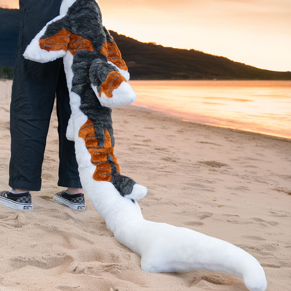 Lets chat over what you have in mind using the blue chat envelope in the bottom right hand corner. The one shown in the images is 60 inches long but we can make them much longer and thicker too. Obviously these are not animatronic tails - they move as you move, and can be wrapped around you and cuddled!
