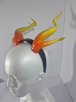 We are really excited to team up with Lupi Crafts to offer a range of fantastic cosplay horns to make your outfit! These devil horns pictured are around 3 inches (7.5cm) in height. We can also make a 4″ (10cm) version. But we can actually make anything you like – get in touch with the blue envelope in the corner.