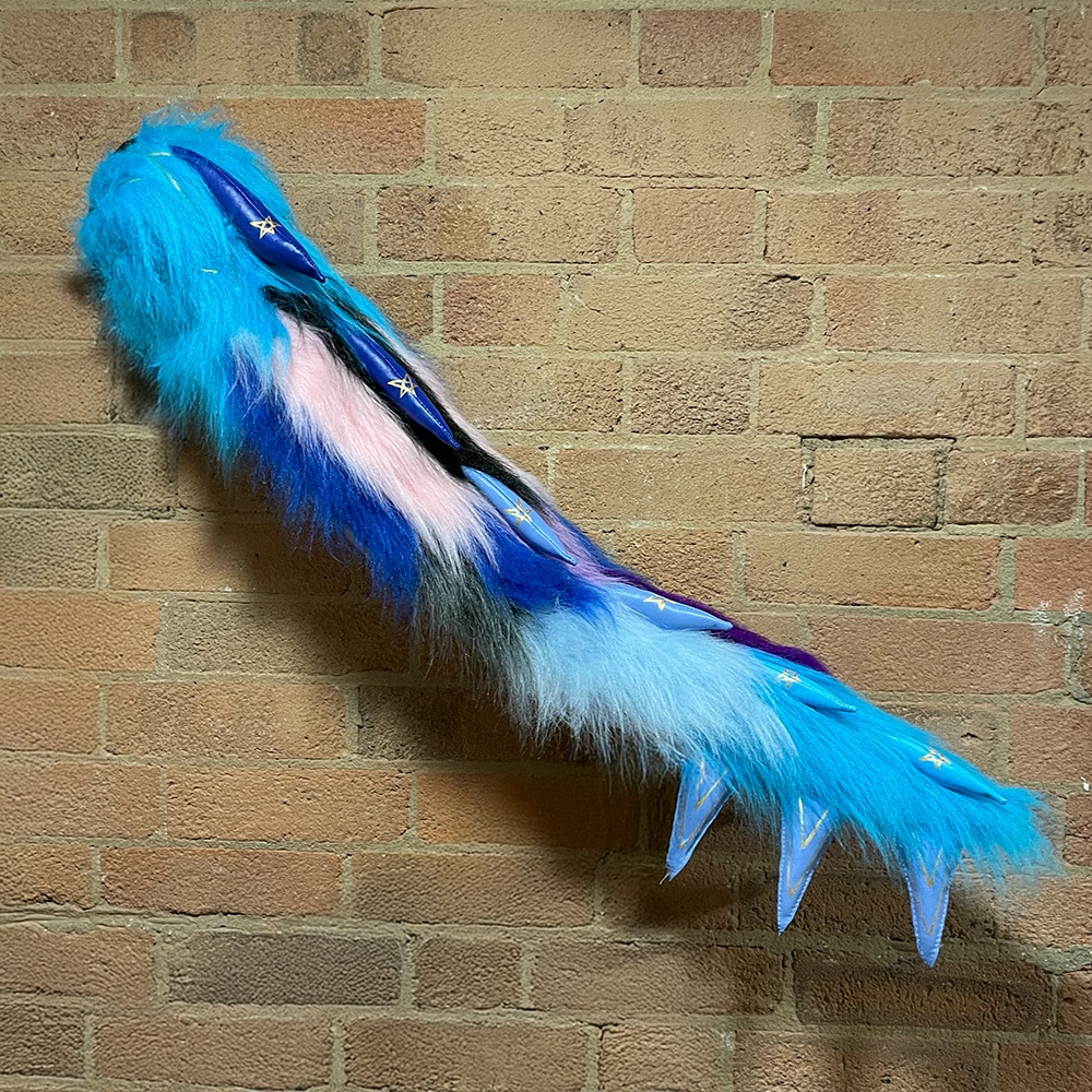And of course, all our furry tails can usually be customized for free! Whether you want a golden dragon tail, a snow leopard tail, a beautiful fox tail or something completely different, we can make it for you. Please bear in mind that some designs you come up with may incurr an extra cost. Perhaps you want a premium fur, or a detailed pattern, or something needs airbrushing. We will always discuss this with you before we make the item.